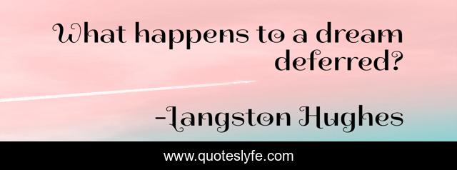 This page presents the quote "What happens to a dream deferred?". Author of this quote is Langston Hughes. This quote is about poem, chasing, poetry, dreams,.