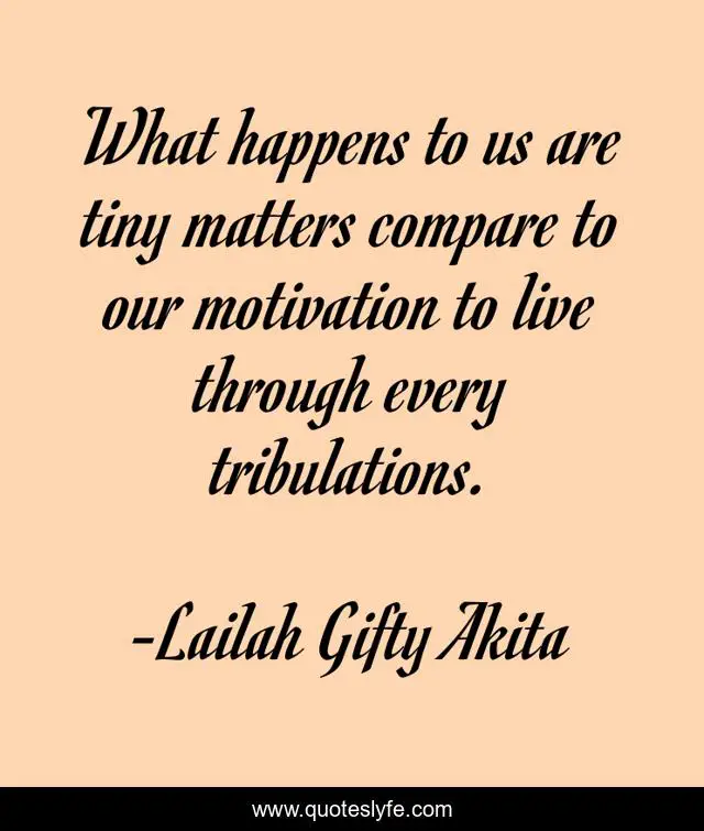 This page presents the quote "What happens to us are tiny matters compare to our motivation to live through every tribulations.". Author of this quote is Lailah Gifty Akita. This quote is about trials, motivation, mistakes, adversity,.
