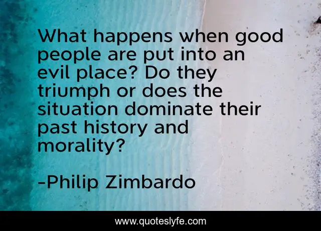 This page presents the quote "What happens when good people are put into an evil place? Do they triumph or does the situation dominate their past history and morality?". Author of this quote is Philip Zimbardo. This quote is about past, good, evil,.
