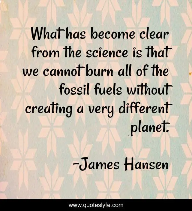 This page presents the quote "What has become clear from the science is that we cannot burn all of the fossil fuels without creating a very different planet.". Author of this quote is James Hansen. This quote is about different, burn, creating,.