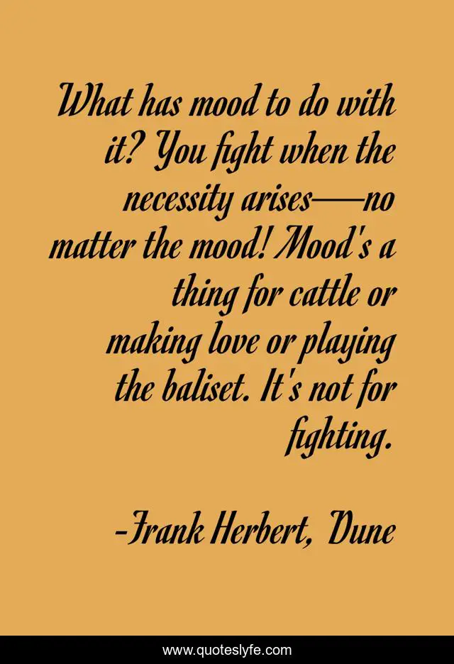 "Frank Herbert, Dune Quotes." Quoteslyfe.com, 2025. Sat. 06 Dec. 2025. <https://www.quoteslyfe.com/quote/What-has-mood-to-do-with-it-251508>.