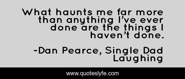This page presents the quote "What haunts me far more than anything I’ve ever done are the things I haven’t done.". Author of this quote is Dan Pearce, Single Dad Laughing. This quote is about past-regrets, living-life-to-the-fullest, overcoming-the-past, regrets,.
