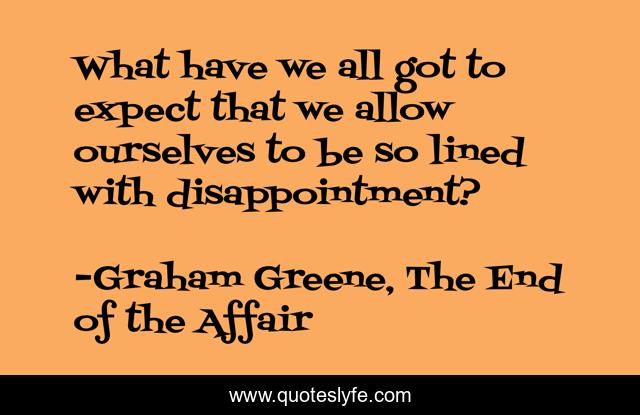 This page presents the quote "What have we all got to expect that we allow ourselves to be so lined with disappointment?". Author of this quote is Graham Greene, The End of the Affair. .