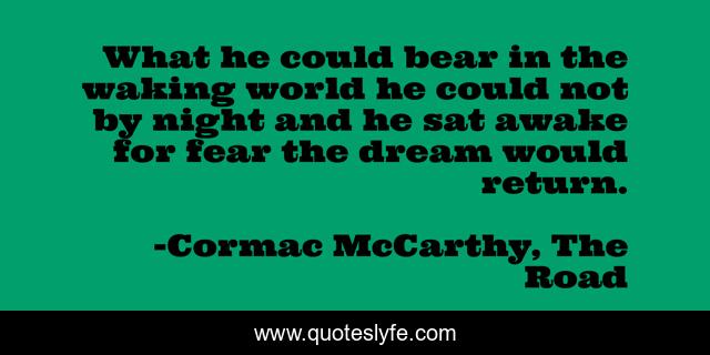This page presents the quote "What he could bear in the waking world he could not by night and he sat awake for fear the dream would return.". Author of this quote is Cormac McCarthy, The Road. .