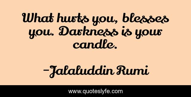 "Jalaluddin Rumi Quotes." Quoteslyfe.com, 2025. Mon. 08 Dec. 2025. <https://www.quoteslyfe.com/quote/What-hurts-you-blesses-you-Darkness-is-149995>.
