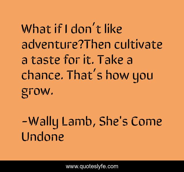 This page presents the quote "What if I don’t like adventure?Then cultivate a taste for it. Take a chance. That’s how you grow.". Author of this quote is Wally Lamb, She's Come Undone. This quote is about life, adventure,.