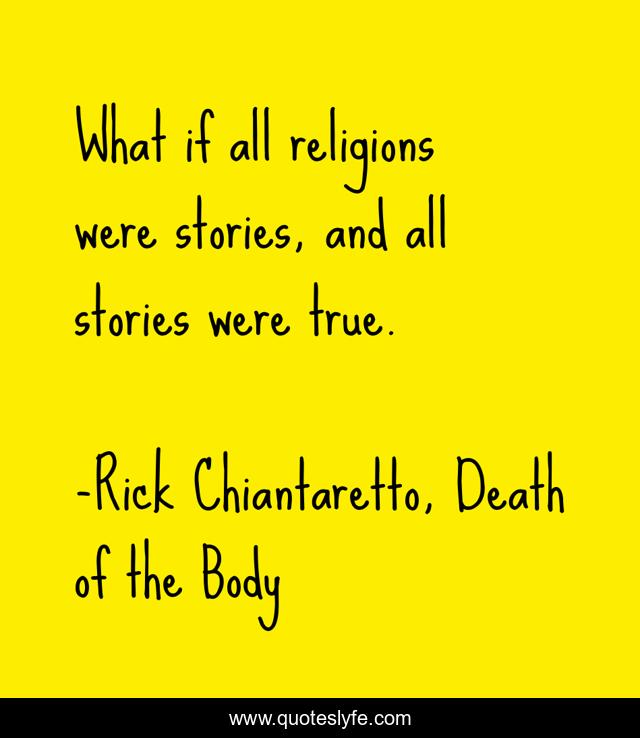 "Rick Chiantaretto, Death of the Body Quotes." Quoteslyfe.com, 2025. Mon. 08 Dec. 2025. <https://www.quoteslyfe.com/quote/What-if-all-religions-were-stories-and-156371>.