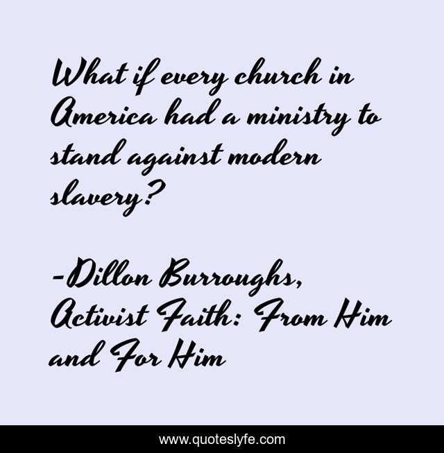 "Dillon Burroughs, Activist Faith: From Him and For Him Quotes." Quoteslyfe.com, 2025. Sat. 06 Dec. 2025. <https://www.quoteslyfe.com/quote/What-if-every-church-in-America-had-193800>.