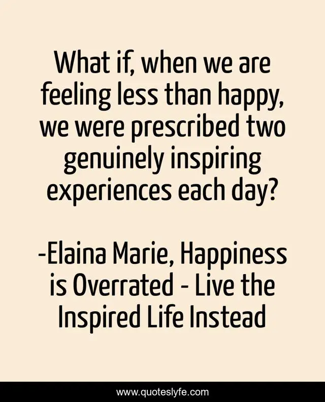 "Elaina Marie, Happiness is Overrated - Live the Inspired Life Instead Quotes." Quoteslyfe.com, 2025. Sun. 14 Dec. 2025. <https://www.quoteslyfe.com/quote/What-if-when-we-are-feeling-less-183188>.