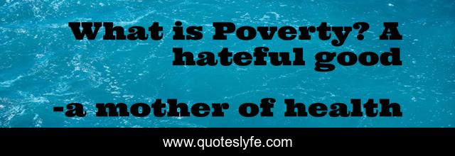 This page presents the quote "What is Poverty? A hateful good". Author of this quote is a mother of health. .