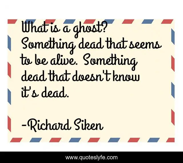 This page presents the quote "What is a ghost? Something dead that seems to be alive. Something dead that doesn't know it's dead.". Author of this quote is Richard Siken. .