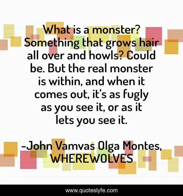 "John Vamvas Olga Montes, WHEREWOLVES Quotes." Quoteslyfe.com, 2025. Fri. 05 Dec. 2025. <https://www.quoteslyfe.com/quote/What-is-a-monster-Something-that-grows-156516>.