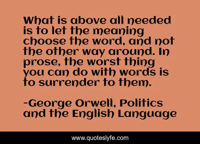 What is above all needed is to let the meaning choose the word, and not the other way around. In prose, the worst thing you can do with words is to surrender to them.