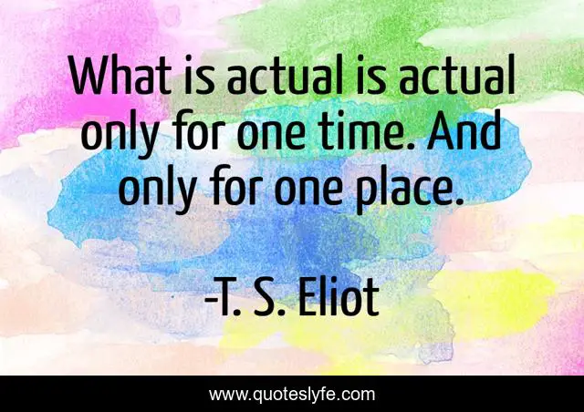 This page presents the quote "What is actual is actual only for one time. And only for one place.". Author of this quote is T. S. Eliot. This quote is about transience, change,.