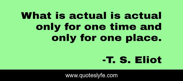 This page presents the quote "What is actual is actual only for one time and only for one place.". Author of this quote is T. S. Eliot. .