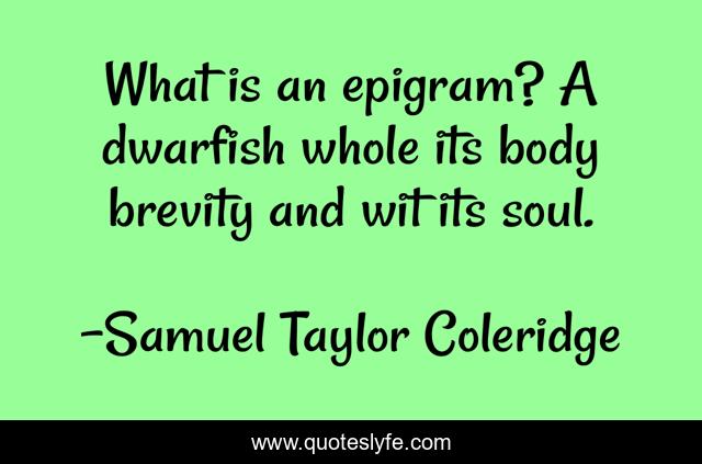This page presents the quote "What is an epigram? A dwarfish whole its body brevity and wit its soul.". Author of this quote is Samuel Taylor Coleridge. .
