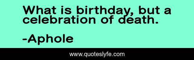 This page presents the quote "What is birthday, but a celebration of death.". Author of this quote is Aphole. This quote is about thought, death, love, affection, aphole,.