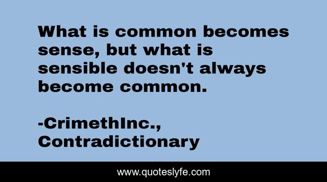 "CrimethInc., Contradictionary Quotes." Quoteslyfe.com, 2025. Sat. 06 Dec. 2025. <https://www.quoteslyfe.com/quote/What-is-common-becomes-sense-but-what-251681>.
