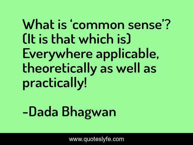 This page presents the quote "What is ‘common sense’? (It is that which is) Everywhere applicable, theoretically as well as practically!". Author of this quote is Dada Bhagwan. This quote is about common-sense, practicle, spiritual, applicable,.