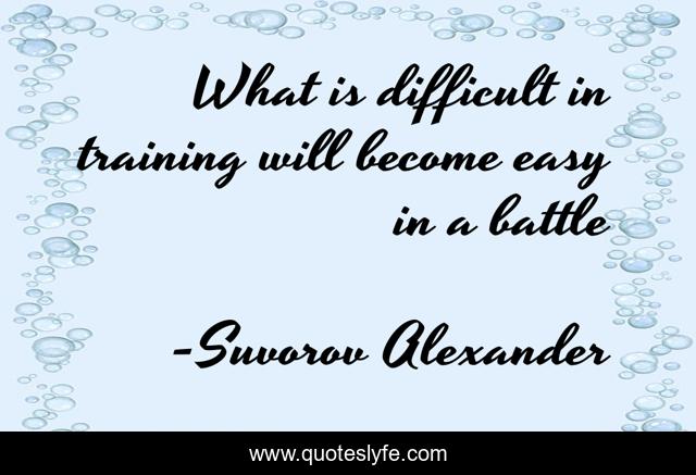This page presents the quote "What is difficult in training will become easy in a battle". Author of this quote is Suvorov Alexander. This quote is about life, training, winning, victory, inspirational, battle, enthusiasm,.