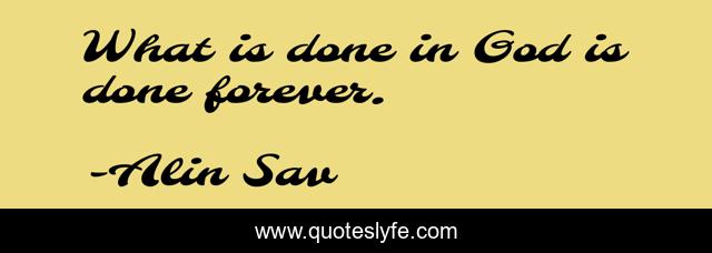 This page presents the quote "What is done in God is done forever.". Author of this quote is Alin Sav. .
