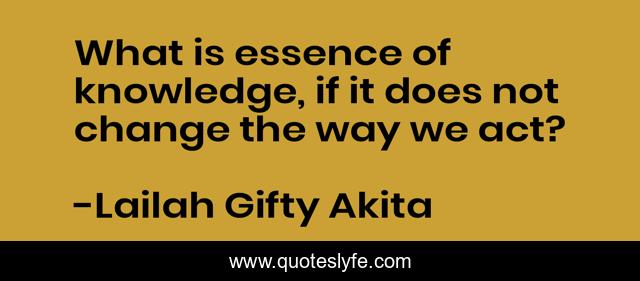 This page presents the quote "What is essence of knowledge, if it does not change the way we act?". Author of this quote is Lailah Gifty Akita. This quote is about knowledge, inspiring-thoughts, behaviour-wisdom, action, education, change,.
