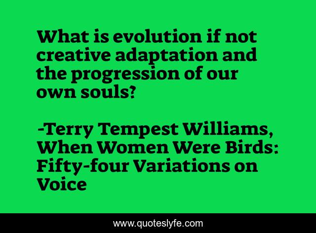 This page presents the quote "What is evolution if not creative adaptation and the progression of our own souls?". Author of this quote is Terry Tempest Williams, When Women Were Birds: Fifty-four Variations on Voice. .