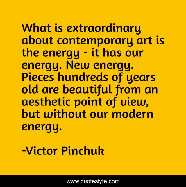 This page presents the quote "What is extraordinary about contemporary art is the energy - it has our energy. New energy. Pieces hundreds of years old are beautiful from an aesthetic point of view, but without our modern energy.". Author of this quote is Victor Pinchuk. This quote is about beautiful, point of view,.