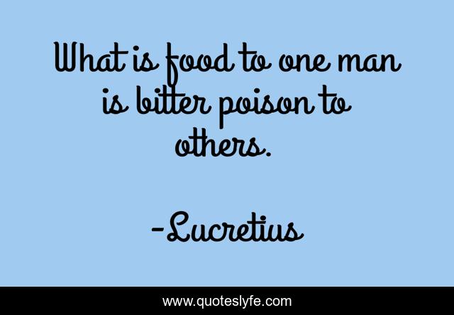 This page presents the quote "What is food to one man is bitter poison to others.". Author of this quote is Lucretius. This quote is about bitter, poison, man,.