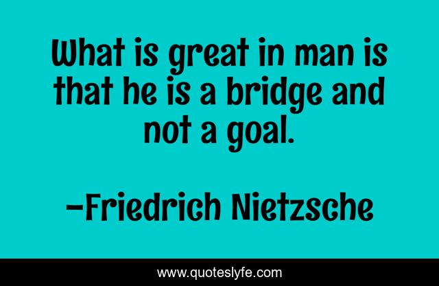 This page presents the quote "What is great in man is that he is a bridge and not a goal.". Author of this quote is Friedrich Nietzsche. This quote is about great, greatness, man,.