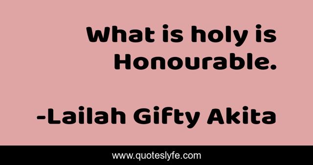 This page presents the quote "What is holy is Honourable.". Author of this quote is Lailah Gifty Akita. This quote is about christian, honourable, holy, self-help,.