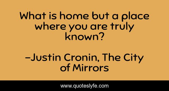 This page presents the quote "What is home but a place where you are truly known?". Author of this quote is Justin Cronin, The City of Mirrors. .