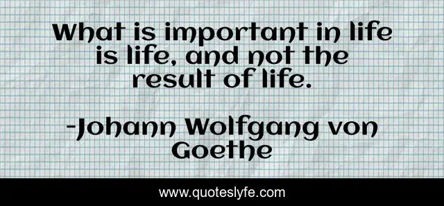 This page presents the quote "What is important in life is life, and not the result of life.". Author of this quote is Johann Wolfgang von Goethe. This quote is about important, result,.