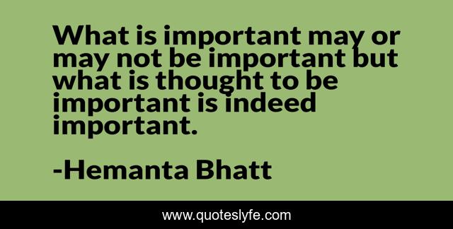 This page presents the quote "What is important may or may not be important but what is thought to be important is indeed important.". Author of this quote is Hemanta Bhatt. This quote is about importance, hemanta-bhatt, hemanta-chandra-bhatt, perception,.