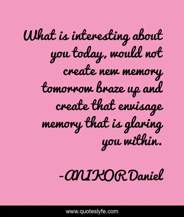 This page presents the quote "What is interesting about you today, would not create new memory tomorrow braze up and create that envisage memory that is glaring you within.". Author of this quote is ANIKOR Daniel. This quote is about positive, confidence, motivational, optimistic,.