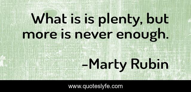 This page presents the quote "What is is plenty, but more is never enough.". Author of this quote is Marty Rubin. This quote is about satisfaction, greed,.