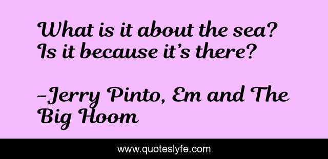 This page presents the quote "What is it about the sea? Is it because it’s there?". Author of this quote is Jerry Pinto, Em and The Big Hoom. This quote is about sea, profound,.