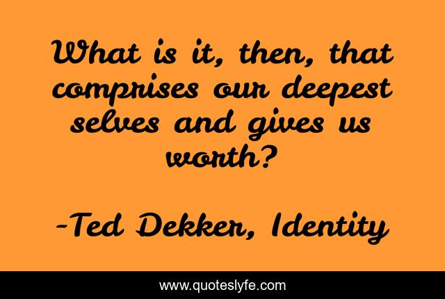 This page presents the quote "What is it, then, that comprises our deepest selves and gives us worth?". Author of this quote is Ted Dekker, Identity. .