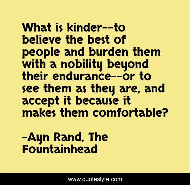 "Ayn Rand, The Fountainhead Quotes." Quoteslyfe.com, 2025. Mon. 08 Dec. 2025. <https://www.quoteslyfe.com/quote/What-is-kinder-to-believe-the-best-136791>.