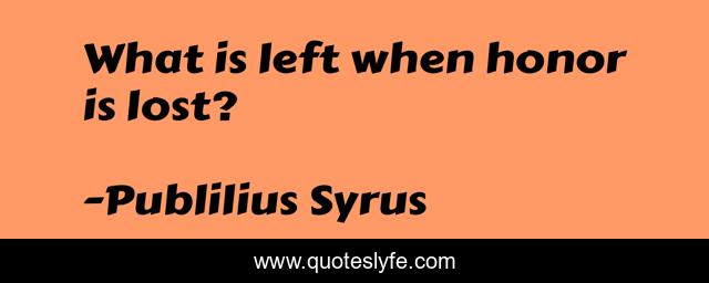 This page presents the quote "What is left when honor is lost?". Author of this quote is Publilius Syrus. This quote is about life, philosophy, honor,.