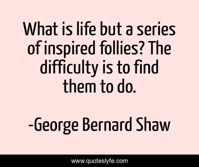 This page presents the quote "What is life but a series of inspired follies? The difficulty is to find them to do.". Author of this quote is George Bernard Shaw. This quote is about fools, foolishness,.