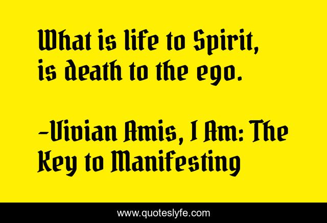 This page presents the quote "What is life to Spirit, is death to the ego.". Author of this quote is Vivian Amis, I Am: The Key to Manifesting. This quote is about kingdom, life, death, consciousness, god, self, within, spiritual, ego,.