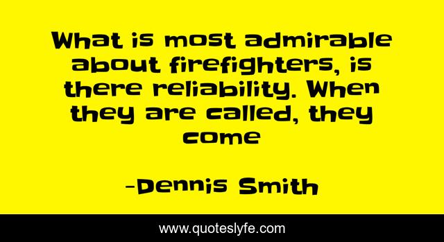 This page presents the quote "What is most admirable about firefighters, is there reliability. When they are called, they come". Author of this quote is Dennis Smith. This quote is about firefighters, inspiring,.