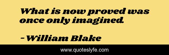 This page presents the quote "What is now proved was once only imagined.". Author of this quote is William Blake. This quote is about english-poet, willpower, knowledge, inspirational, enthusiasm,.