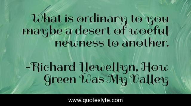 "Richard Llewellyn, How Green Was My Valley Quotes." Quoteslyfe.com, 2025. Sat. 06 Dec. 2025. <https://www.quoteslyfe.com/quote/What-is-ordinary-to-you-maybe-a-153464>.