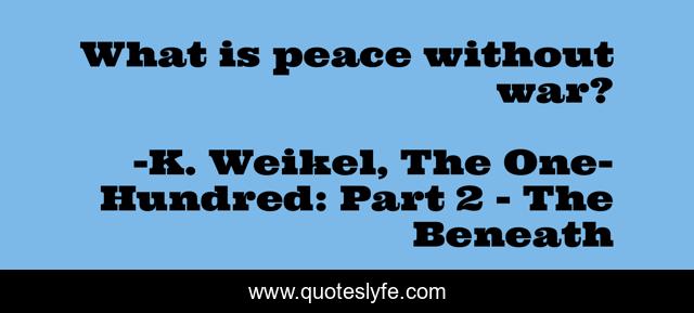 This page presents the quote "What is peace without war?". Author of this quote is K. Weikel, The One-Hundred: Part 2 - The Beneath. This quote is about peace, war, weikel,.