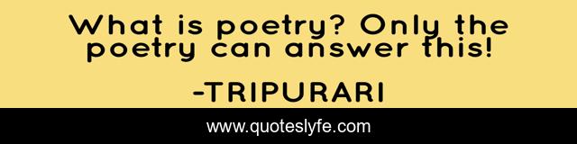 This page presents the quote "What is poetry? Only the poetry can answer this!". Author of this quote is TRIPURARI. This quote is about answer, poem, question, poetry,.