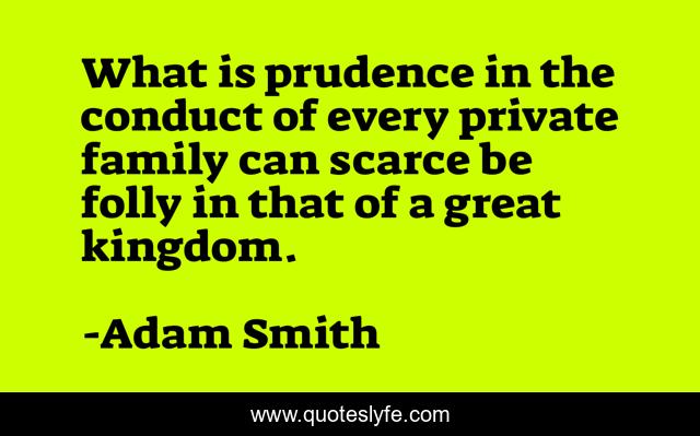 This page presents the quote "What is prudence in the conduct of every private family can scarce be folly in that of a great kingdom.". Author of this quote is Adam Smith. This quote is about economics, adam-smith,.