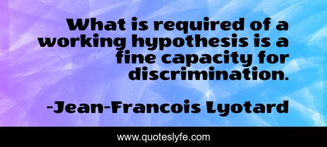 This page presents the quote "What is required of a working hypothesis is a fine capacity for discrimination.". Author of this quote is Jean-Francois Lyotard. This quote is about discrimination, working,.