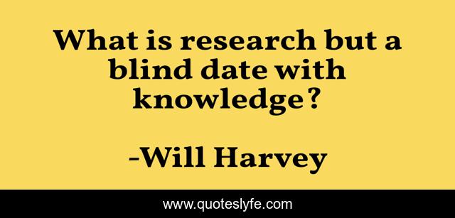 This page presents the quote "What is research but a blind date with knowledge?". Author of this quote is Will Harvey. This quote is about blind, knowledge, research,.